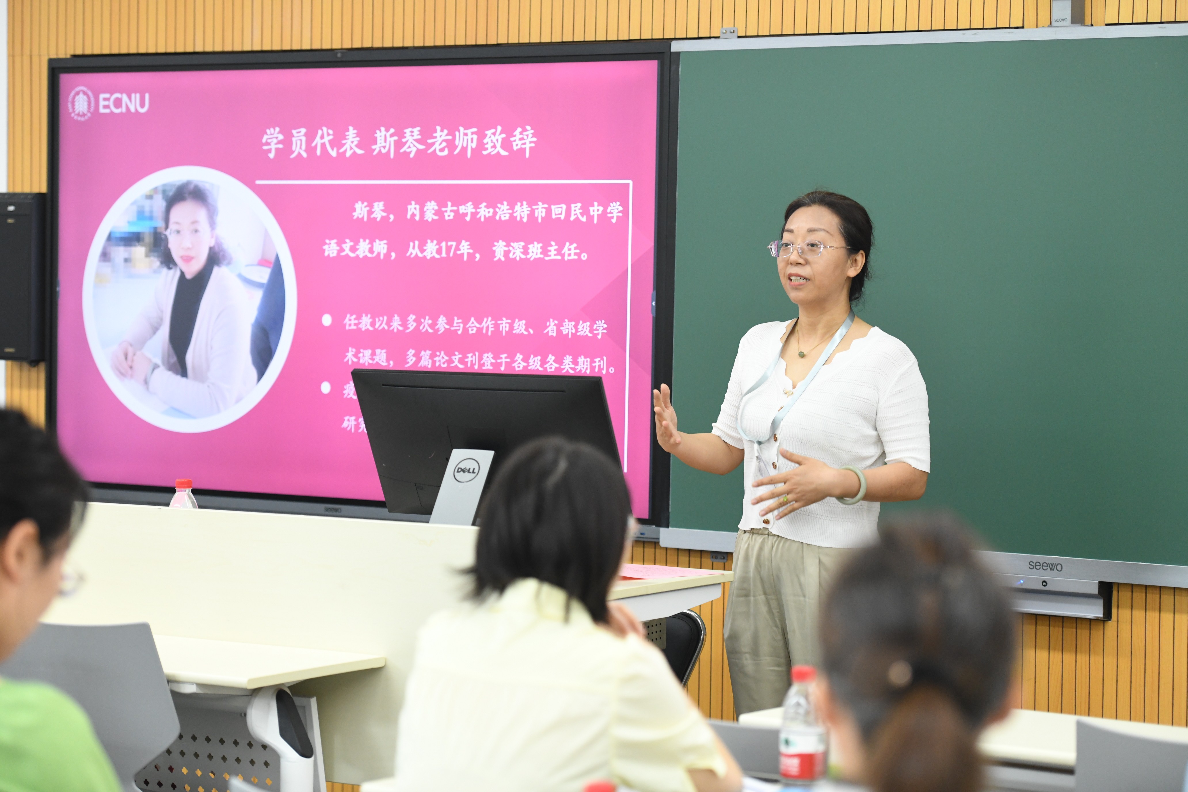 7月24日,华东师大老王论坛 党委书记吕志峰出席开班仪式并致欢迎辞,他表示,希望各位研修的老师都能不虚此行,于学习、交流中开拓思路、互通有无,以“整本书”为切入点,共谋语文教育新发展。开班仪式上,来自内蒙古呼和浩特市回民中学的资深语文教师斯琴老师作为学员代表发言,对五天的研修表达了期待。