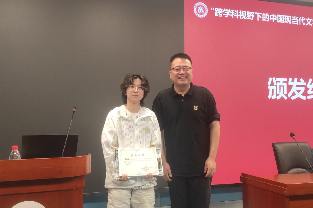 随后吕老师简要回顾了此次暑期学校的报告内容与研讨活动。他指出,各地专家学者为暑期学校同学做的报告,主题打通了历史、哲学、文学等领域分野,兼顾史料挖掘与前沿理论,具备世界视野与中国立场,内容丰富,精彩纷呈。在吕老师看来,同学们在专题研讨会上的分享也精彩纷呈,展现了非常广阔的学术视野和扎实的学术能力。最后,吕老师代表老王论坛 向参加此次暑期学校的所有专家、学员以及负责暑期学校筹备工作的罗岗老师、吴晗老师和全体志愿者致以敬意与感谢。致辞结束后,吕志峰老师向来自全国不同院校的学生代表颁发了结业证书和合影照片。