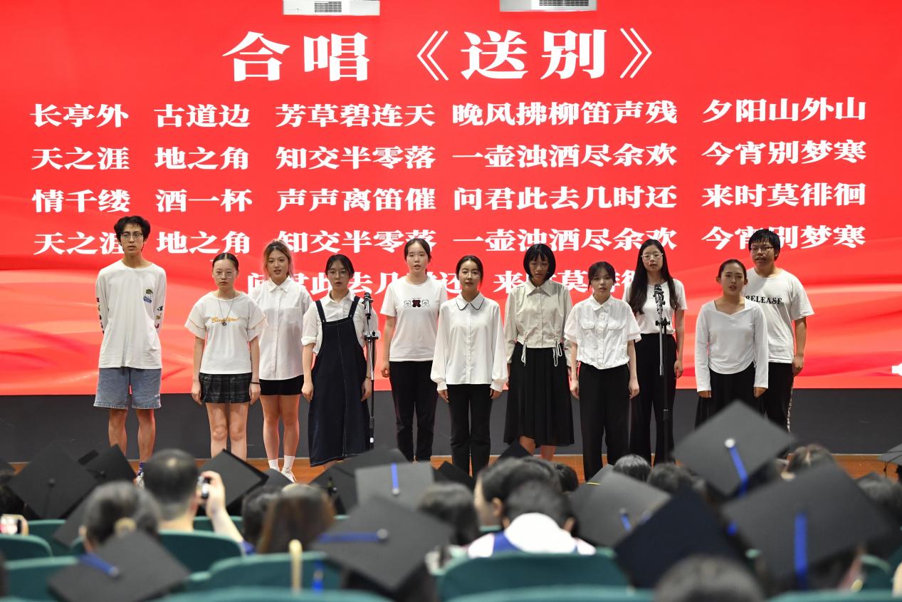 光影交错间,往日又浮现。光影剧目《恰少年·正青春》将毕业生们求学路上的珍贵印记重现于光影之前。最后,全场唱响了属于盛夏的青春之曲——《送别》。