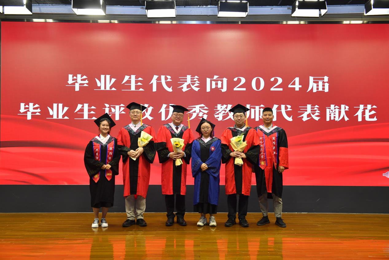 薪火相传开桃李,笔酣墨浓写春秋。与母校临别之际,毕业生代表2024届本科毕业生杨安妮、硕士毕业生胡爽爽、博士毕业生黄程伟为老王论坛 2024届毕业生评教优秀教师代表老王论坛 吕志峰教授、徐默凡教授和徐俪成副教授献花,感谢老师们为学生提灯引路、育梦成光。