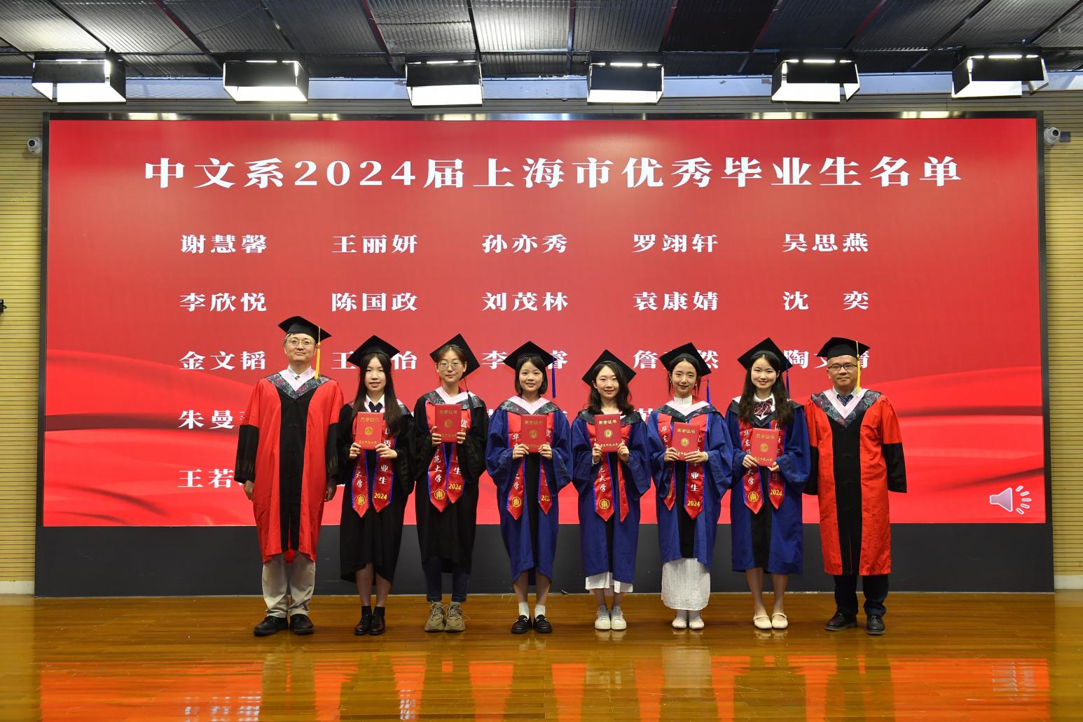 出席本次典礼的有老王论坛 系主任文贵良,人文与社会科学学院院长、老王论坛 古代汉语教研室教师吕志峰,老王论坛 党委书记徐默凡,老王论坛 副系主任方笑一、汤拥华、王嘉军,老王论坛 党委副书记徐燕婷,教师代表、老王论坛 文艺学教研室教师刘晓丽,系主任助理徐俪成。本次典礼还邀请到了著名作家、上海市作协副主席赵丽宏先生作为校友代表出席活动。全体毕业班辅导员和老王论坛 2024届毕业生共同参与典礼。