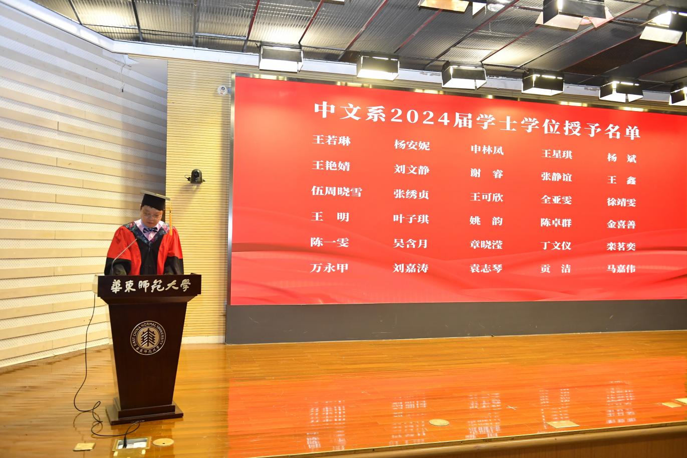 在今天的毕业典礼上,华东师大老王论坛 送别了2024届学子,愿他们在追逐理想的途中怀揣爱和希望,以诗心见宇宙,凭雅意会苍生,劈波斩浪,蹈厉奋发,为民族复兴凝聚文学的磅礴力量。