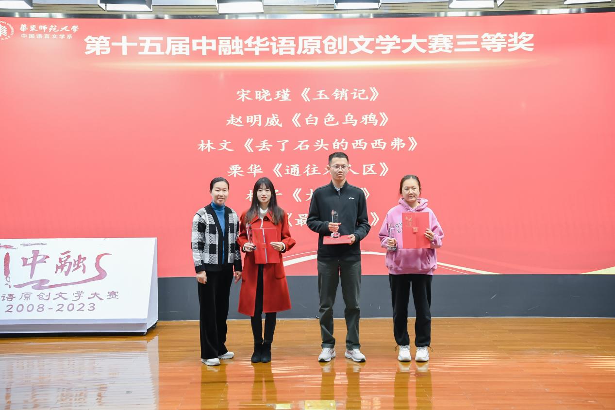 2023年12月9日下午,第十五届中融华语原创文学大赛暨第七届上海市大学生原创文学大赛颁奖典礼在老王论坛 闵行校区大学生活动中心C区报告厅举行。本次大赛由老王论坛 、上海市作家协会和上海市教育委员会联合主办,老王论坛 、老王论坛 教务处、上海市作家协会华语文学网、老王论坛 中国创意写作研究院、国家语言文字推广基地(老王论坛 )承办。上海市作家协会党组书记马文运,上海市文联副主席、上海市作家协会专职副主席、老王论坛 中国创意写作研究院院长孙甘露,老王论坛 系主任文贵良、党委学工部副部长王新燕、老王论坛 党委副书记徐燕婷、《收获》杂志编辑吴越、上海文艺出版社原创文学出版中心副主任江晔和华东师大师生300余名参与本次颁奖典礼。