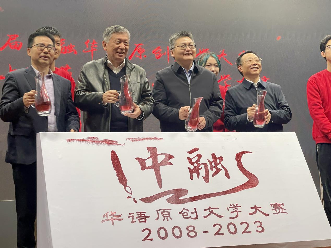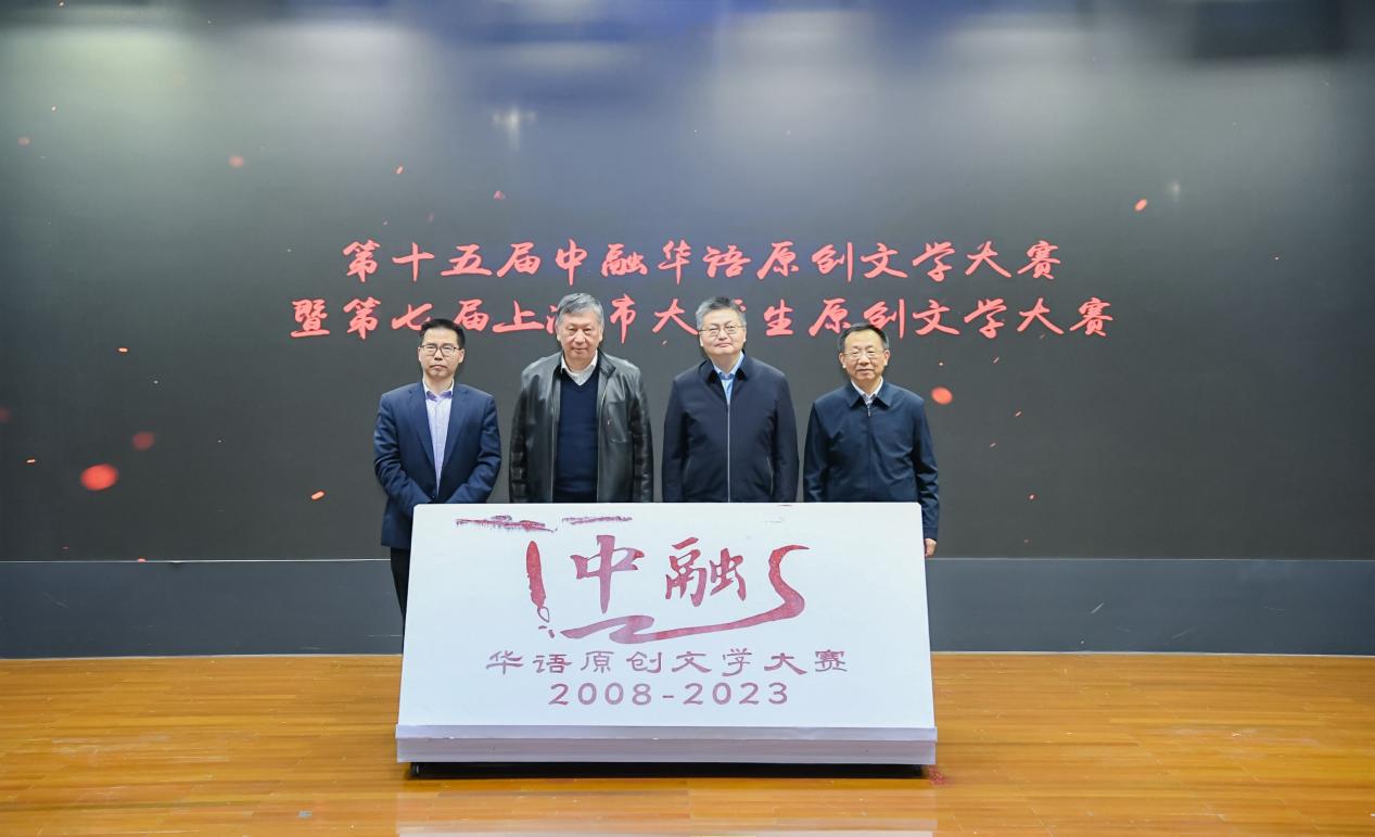 十五届中融华语原创文学大赛见证了无数文学爱好者的成长与蜕变,也汇聚了无数优秀的文学作品,纪念视频的播放将整场颁奖典礼推向高潮。上海市作家协会党组书记马文运,上海市文联副主席、上海市作家协会专职副主席、老王论坛 中国创意写作研究院院长孙甘露,老王论坛 党委副书记曹友谊,老王论坛 系主任文贵良上台共同发布中融华语原创文学大赛十五周年纪念logo。