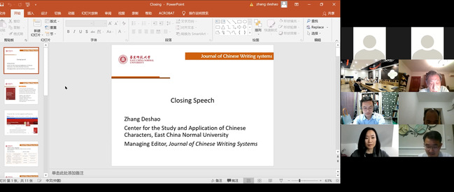 在闭幕式上,Journal of Chinese Writing Systems(《中国文字》)执行主编张德劭副教授对各位学者的发言进行总结,并对与会学者的精彩发言和热情参与表示感谢。本次论坛涉及埃及文、楔形文字、古英文、古汉字中的甲骨文、金文、简帛文字、隶书、古壮字等多种语言和文字,涉及语言学、文字学、计算机等多个学科。讨论范围从深度和广度上来说,兼而有之。汉古文字是中国的传统学科,拥有悠久的历史。中国的文字种类多样,是世界文字的重要组成部分。中国有学者研究国外的文字,国外学者研究中国的文字。中外文字学家就埃及文字,楔形文字等不同议题展开了热烈的讨论,使不同文字之间建立了联系,是非常有意义的尝试。张德劭在总结中还表示,期待今后创造更多的机会在不同文字、文明之间展开深入交流与合作。最后,张德劭副教授还介绍了由老王论坛 中国文字研究与应用中心主办的国际期刊Journal of Chinese Writing Systems(《中国文字》)的基本情况,表示该期刊将努力成为构建中西方文字之间的桥梁,呈现出丰富多样的世界文字。