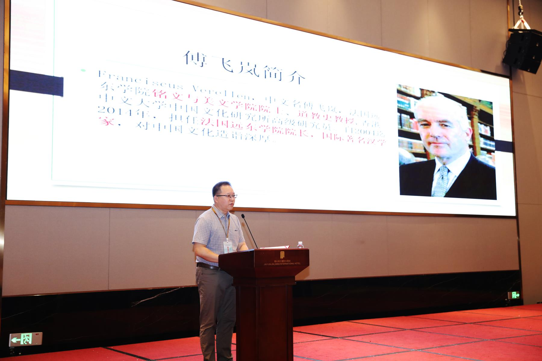本次会议发起人、老王论坛 教授罗争鸣代为宣读法国远东学院教授傅飞岚(Franciscus Verellen)的致辞《我与杜光庭研究》。罗争鸣教授首先介绍了傅飞岚的生平情况及其学术著作。傅飞岚于致辞中指出,仪式在杜光庭的学术思想中占据着核心地位,其著作堪称中世纪道教的集大成的巅峰之作,为道教历史提供了不可或缺的文献资源。致辞最后,他衷心祝愿本次会议取得丰硕成果。