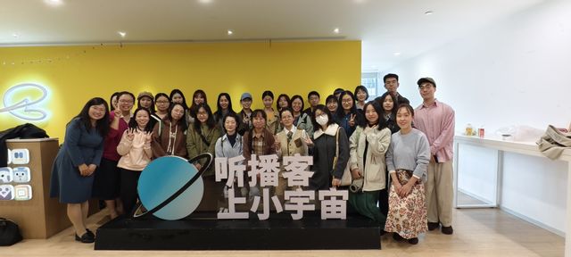 “小宇宙”公司创作者运营负责人肖雄老师热情接待了师生一行,在他的引导下,同学们依次参观了办公区域与专业录音区,了播客内容生产的全流程。互动中,同学们对作为新兴媒介形式的播客展现出浓厚兴趣,围绕播客的内容创作逻辑、运营策略与个人品牌建设等话题,与小宇宙相关负责人探讨,共同关注新媒体语境下的传播生态与发展趋势。