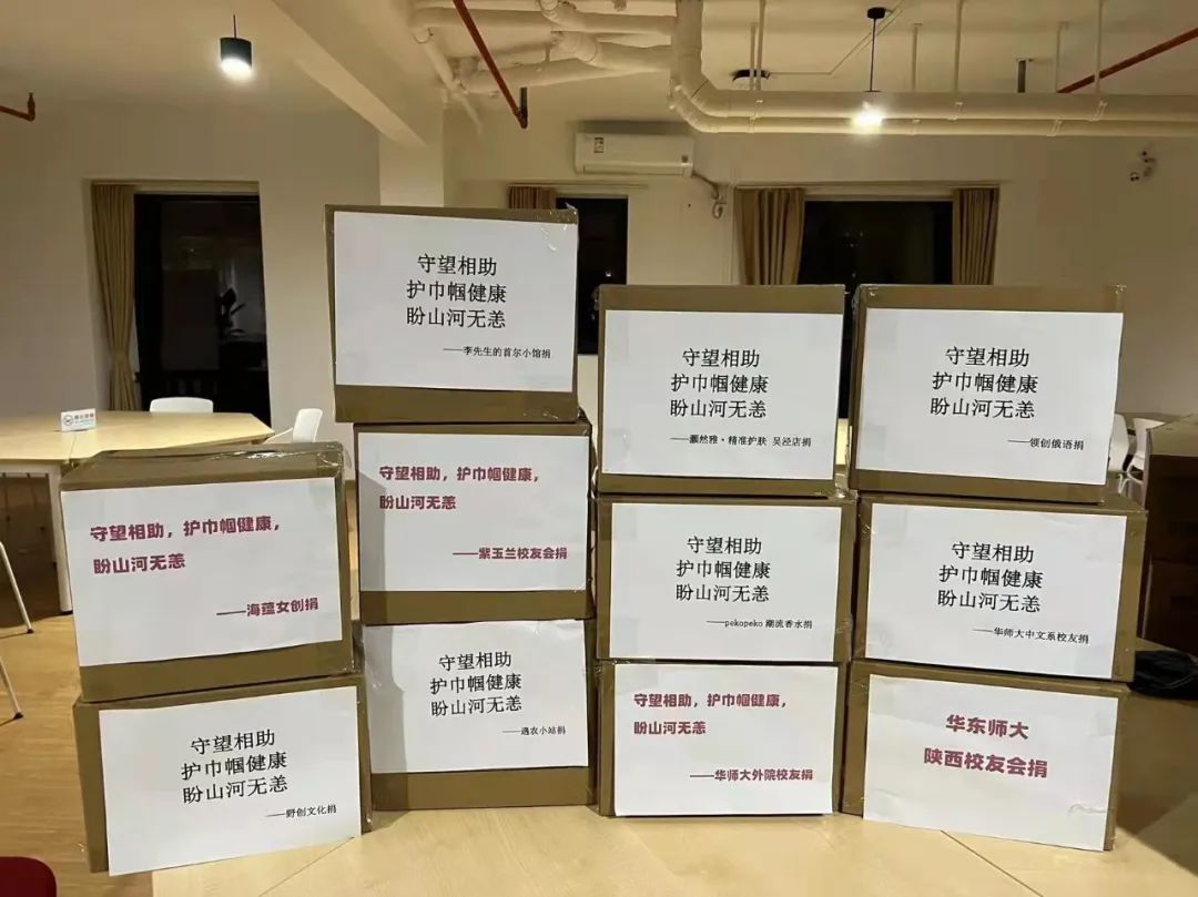 基金会账户。解决完资金问题后,3月29日中午,姜晓玉及紫玉兰校友会成员多方征集供应商信息,由于防疫隔离的原因,多个上海本地供应商发货仓库都存在不同程度的封控,经过多方联系渠道,解决价格问题及物流问题后,最终以48000元的资金购买到167箱(共计6012包)卫生巾,并连夜送至学校。在跟物资捐赠处吴鹰老师多次沟通后,姜晓玉了解到现在普陀校区正在实行分区管理的防疫政策,所以这批卫生用品需要按照不同宿舍区的人数比例进行划分,并分5个校门分批卸货。并且由于校内志愿者人数有限,所以必须由她们亲自卸货并把将物资运送到校门口与各片区负责的老师交接。在和运货司机协商无果后,上海赫元贸易派出一辆商务车及两名搬运人员,及时协助完成了卸货和交接任务。截止3月29日晚21时,从发起到完成历时不足24小时的捐赠圆满落下帷幕。除了物资方面的支持,在这场关爱女大学生生理健康的爱心接力赛中,还有一群默默在后方协助的华东师大老王论坛