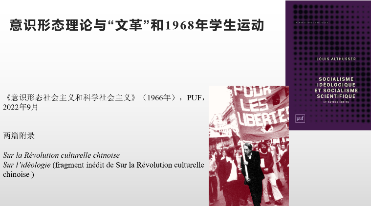首先,吴老师将《论再生产》放到阿尔都塞的思考脉络中,指出本书是阿尔都塞在马克思关于社会形态科学理论的延长线上去进行思考的。阿尔都塞不是从哲学的角度去讲历史政治,而是站在马克思所开创的历史科学的角度去讨论哲学。因此,《论再生产》是阿尔都塞对马克思主义历史科学发展和完善的一个系统性的起点,在此基础上,吴老师提出“七十年代阿尔都塞”这一概念。随着近些年阿尔都塞写于1970年代大量遗稿的整理出版,我们可以发现七十年代时期阿尔都塞写作的许多文本都是沿着《论再生产》所开启的路线,对马克思主义历史科学中的一些重要问题作出持续思考和探索。“七十年代阿尔都塞”中不仅有关于马克思主义陷入危机的宣言,更有大量关于摆脱“危机”的理论推进乃至实际政治干预的吁求,需要研究者进一步加以重视。