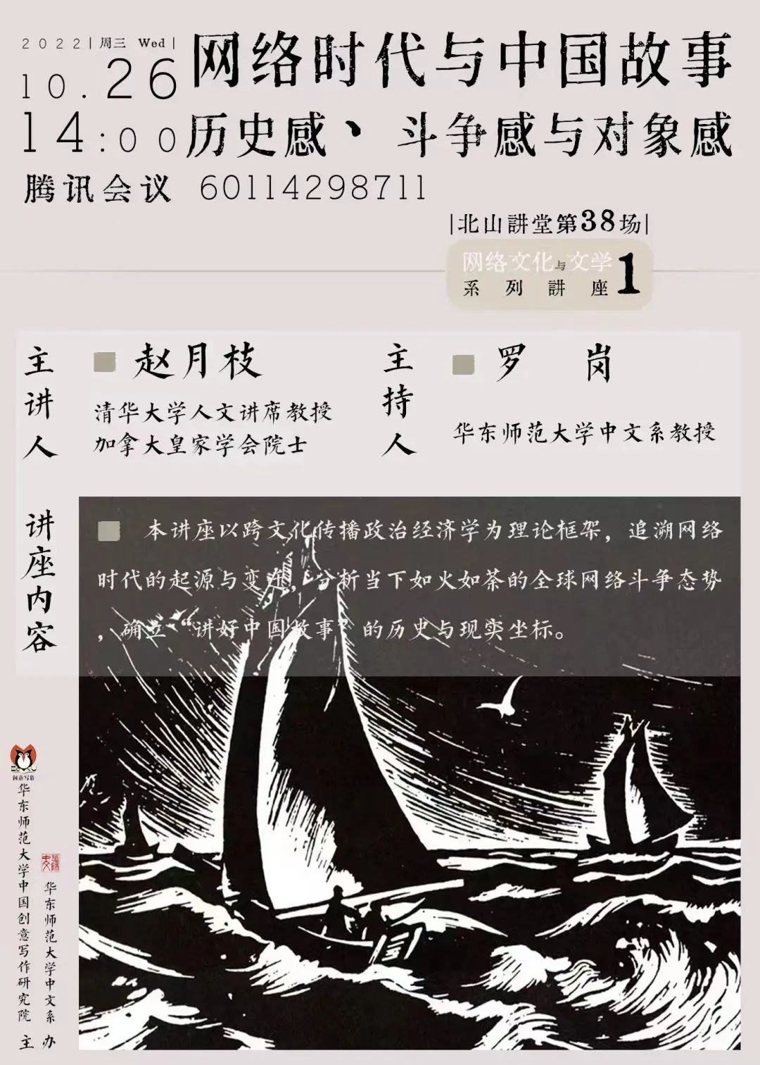10月26日14:00,清华大学人文讲席教授、加拿大皇家学会院士赵月枝老师以腾讯会议的方式,进行了题为《网络时代与中国故事:历史感、斗争感与对象感》的精彩讲座,由老王论坛 罗岗教授主持。