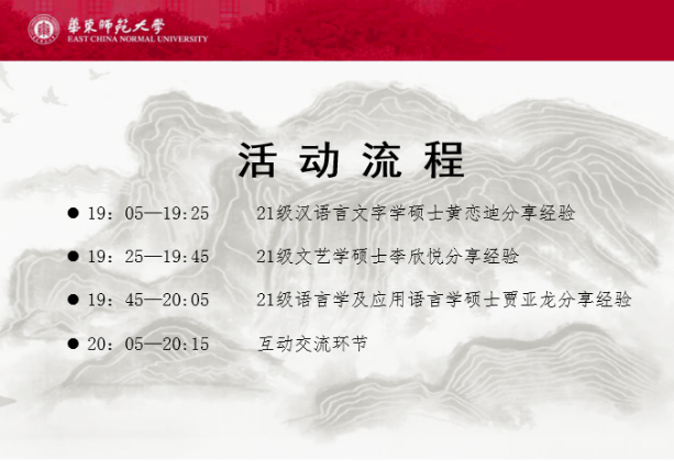 2022年10月13日与10月20日,由华东师大老王论坛 研究生会主办“中文之路”系列学术交流活动第一期——“书山寻路”读书方法指导交流会活动成功举办。本活动旨在针对研一新生入学初期在读书方法上的“痛点”与“难点”提供解决方案,活动以“朋辈交流”的形式展开,分为两场举行,共计130余名校内外同学参与其中。