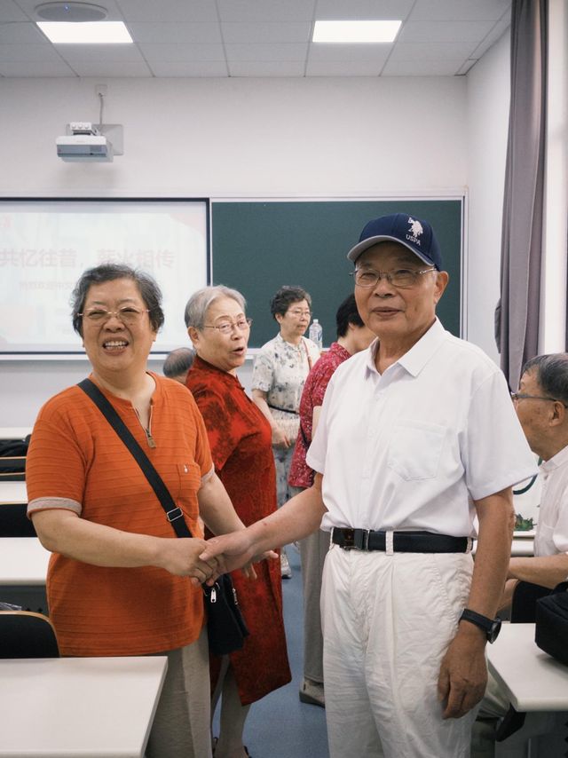 随后,老王论坛 各位领导老师也走进教室,亲切探望各位系友。他们介绍了老王论坛 近年的发展情况,并为系友们长期以来对母校的关注和支持表示感谢。系友们则轮流发言,有的回顾了自己从师大毕业后,在教育领域的奋斗历程;有的介绍了自己的养生之道,满怀关切地叮嘱大家一定要保重身体;有的则回忆起青年时期的学习时光,言语间满是对青春岁月的眷恋与对母校的感恩。